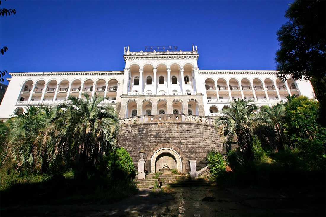 Величественный дворец, возвышающийся на горном склоне в окружении буйной субтропической растительности, считается настоящим украшением Старой Гагры