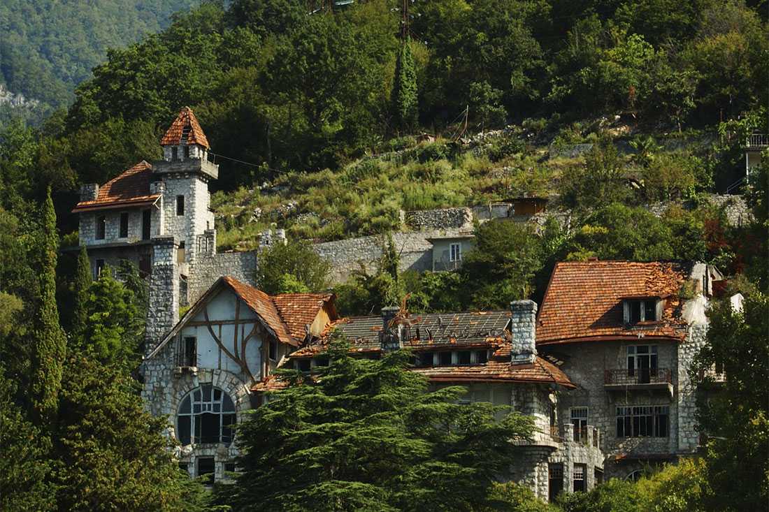 На свой страх и риск можно прогуляться по некогда красивым залам, любуясь старинными каминами, полом, который выложен замысловатыми узорами, и другими остатками былой роскоши. Со второго этажа открывается чудесный вид на Гагру. Замок окружает живописный Приморский парк – идеальное место для приятных прогулок.