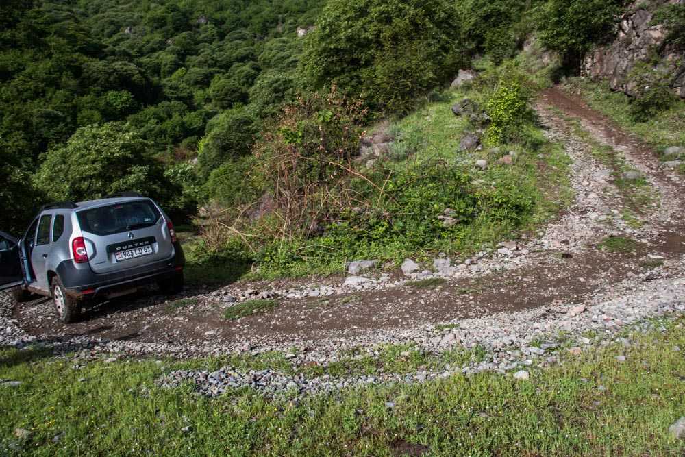 Дальше дорога превратилась в узкий горный серпантин, покрытый смесью глины и гальки. Было реально стрёмно, что машина сползёт по этой каше в пропасть. Немного подумав (не мешало бы сделать это пораньше!), я предложил нашим девушкам прогуляться пешком, чтобы «не класть все яйца в одну корзину» и чтобы, если что, было кому вызвать помощь…