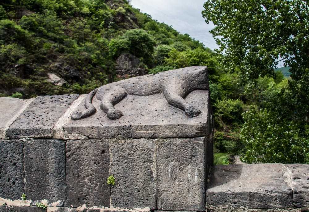 Он был построен в 1192 году из больших блоков базальтового камня. Украшен мост четырьмя фигурами диких кошек.