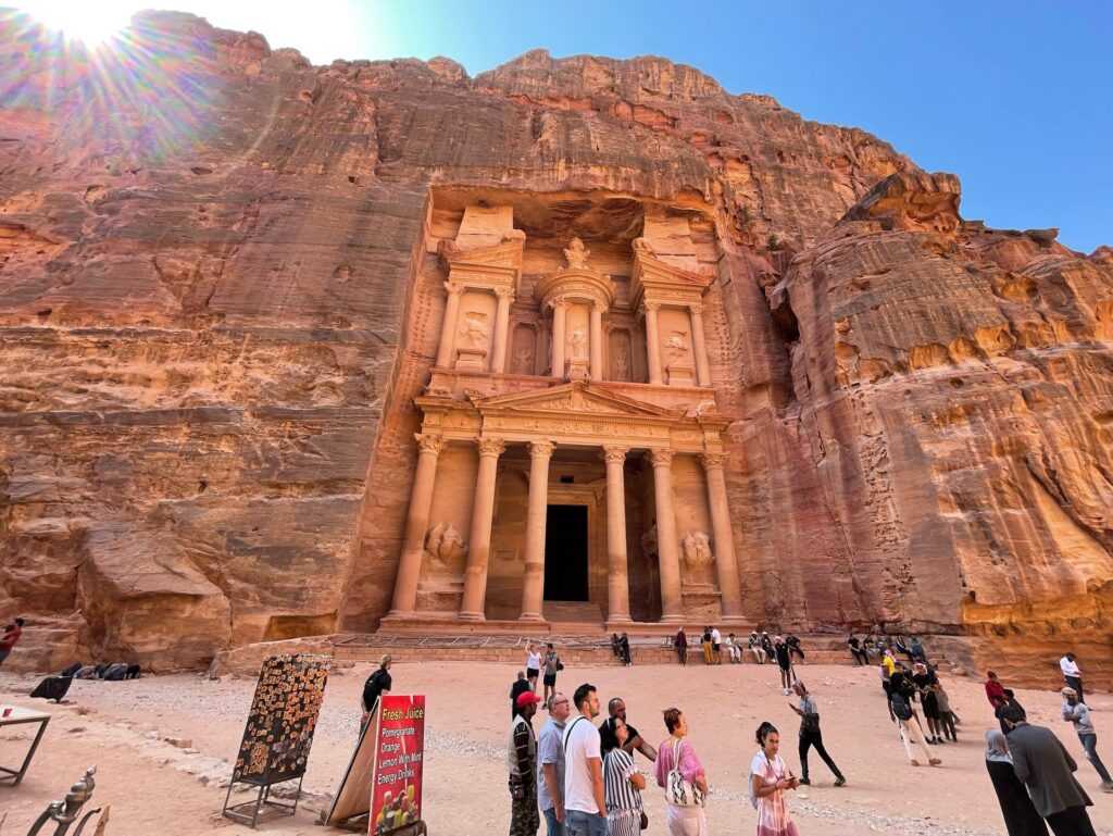 Как только вы окажетесь у сокровищницы, вас просто завалят предложениями подняться к месту с идеальным видом всего за 10 ИД (1000 рублей на январь 2022), 5 ИД (500 рублей на январь 2022) или ещё сколько-то. Не соглашайтесь. Платить посреднику, чтобы туда попасть, не обязательно. Реальная цена входа в видовые кафе — 1 ИД (100 рублей на январь 2022). Просто постойте на площади некоторое время и посмотрите, куда шустрилы уводят туристов, а затем проследуйте туда самостоятельно.