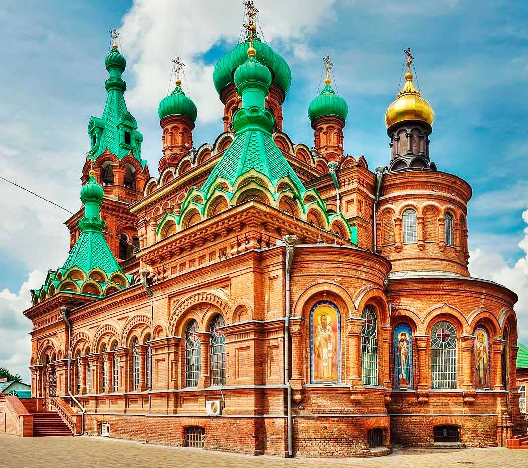 Сегодня роскошный краснокирпичный собор снова вернул свое значение. Он выполнен в неовизантийском и псевдорусском стиле, увенчан зелеными и золотыми куполами. Жемчужины внутреннего убранства – старинный иконостас и настенные росписи.