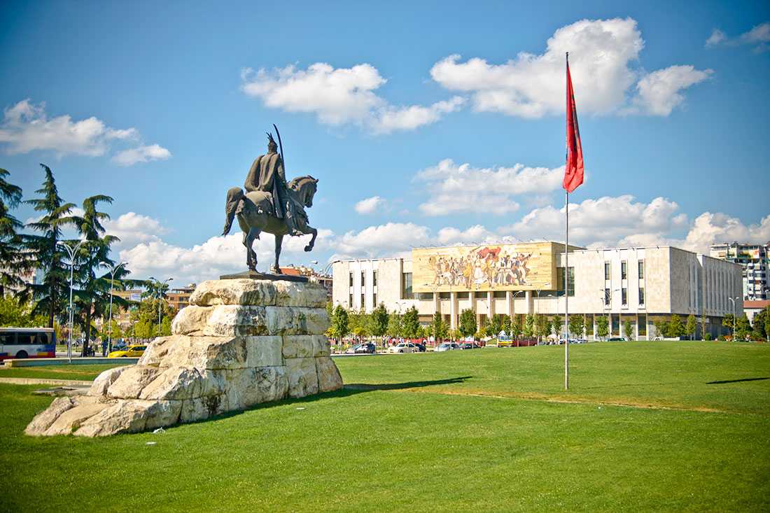 Главная площадь албанской столицы Тираны носит имя Скандербега – национального героя, который в XV веке вел борьбу с османскими захватчиками. В центральной части площади установлен памятник Скандербегу.