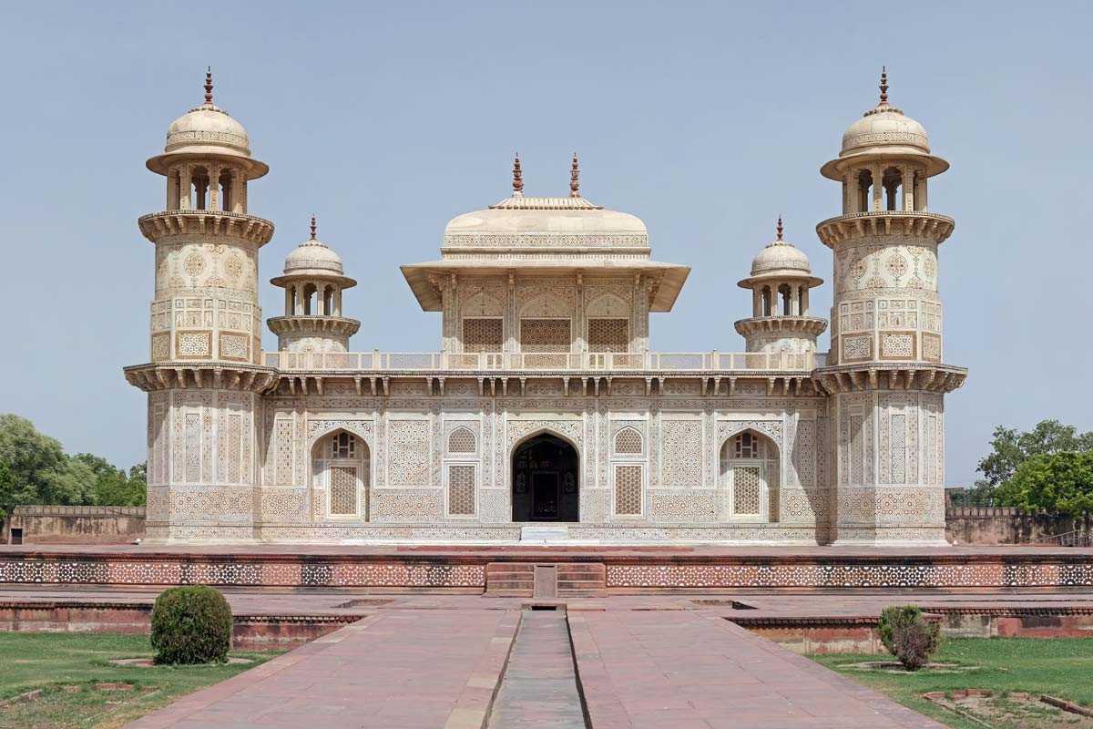 Могила Итимад-Уд-Даула была построена где-то между 1622 и 1628 годами, этому памятнику искусства было дано много названий, среди которых «Беби Тадж» и «Сундук с Драгоценностями» . Создателем мавзолея был Итемад-уд -Даула или Мирза Гияз Бегум, отец Нур Джахан (жены Джахангира ). Могила находится на правом берегу реки Ямуна и построена она в основном из белого мрамора, который доставлялся из Раджастана. Для украшения были использованы решетчатые работы и полудрагоценные камни, такие как яшма, сердолик, оникс, лазурит и топаз.