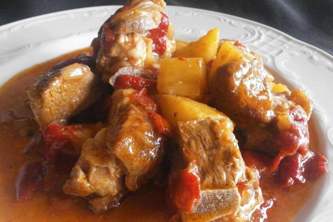 - Ajoarriero — традиционный рецепт тушеной трески с красным и зеленым перцем, помидорами, луком и картофелем.