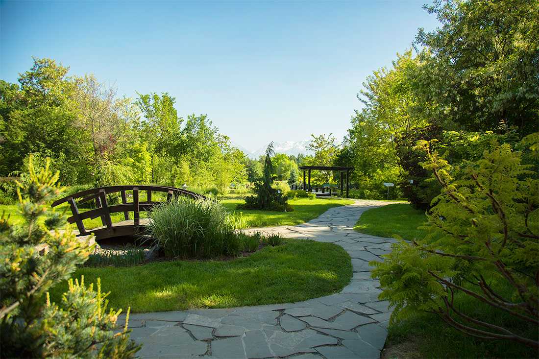 На впечатляющей территории в 103 гектара находится самый большой в городе парк – Ботанический сад. Он был создан в 1932-м, и на его территории сразу началась работа по изучению акклиматизации растений и выведению ценных разновидностей. Усилия селекционеров не прошли даром: коллекция сада насчитывает 7 тыс. видов растений – как типичных для Казахстана, так и более экзотических.
