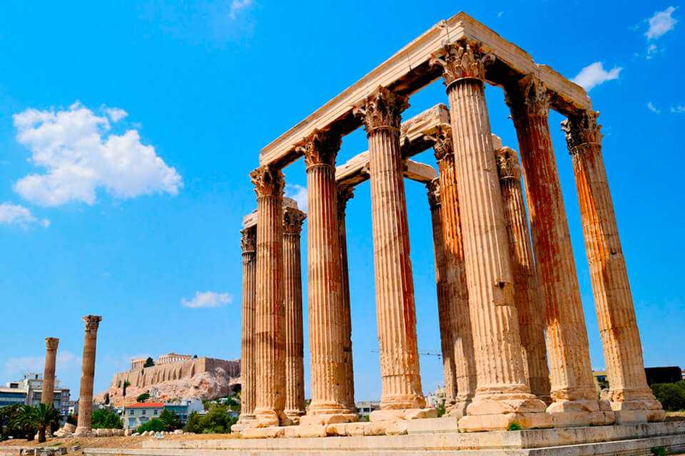Многие императоры мечтали создать нечто такое, что увековечило бы их имя. Так Писистрат положил начало строительству храма Зевса, который по его задумкам должен был стать самым большим храмом среди существующих. Греки же роптали, видя в монументе лишь проявление капризов правящего тирана. По этой и другим причинам возводилось здание в течение 6 столетий, а простояло всего 3. До нас дошли 16 колонн, 14 из которых образуют угол храма некогда величественно храма Зевса Олимпийского. Строение имело внушительные размеры.