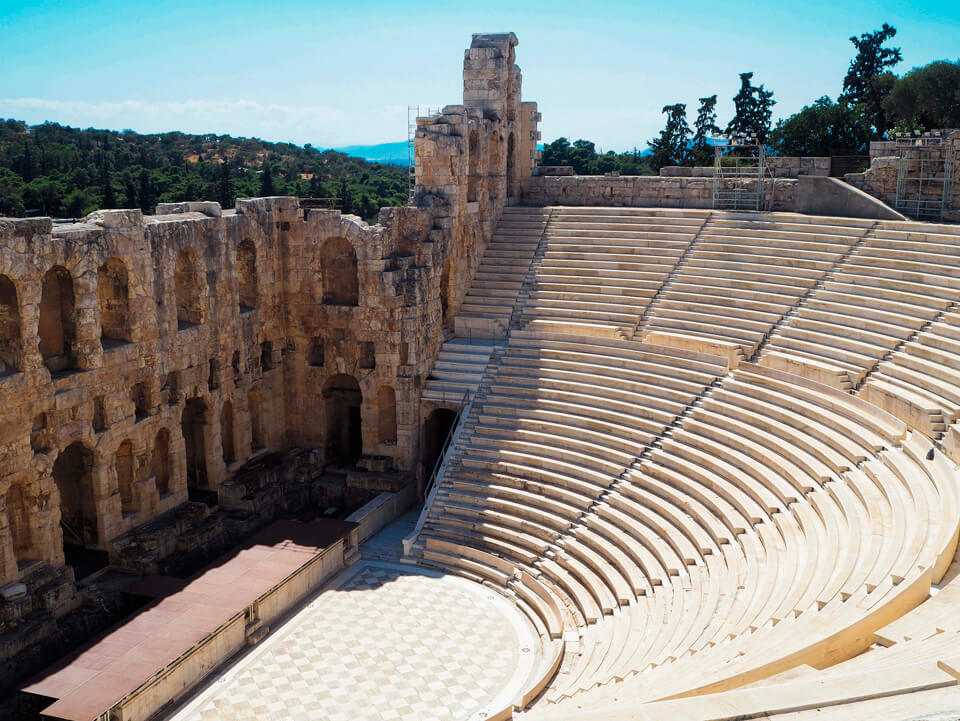 На юго-востоке Акрополя в Афинах располагается еще один памятник зодческого мастерства и любви к искусству древних греков. Посетите это место, чтобы покричать и попеть ради эксперимента. Удивительная акустика амфитеатра позволяет прекрасно слышать выступающего на сцене оратора даже самому дальнему зрителю. В античности в этом месте показывались спектакли, зарождалось и прославлялось классическое в нашем понимании театральное искусство.