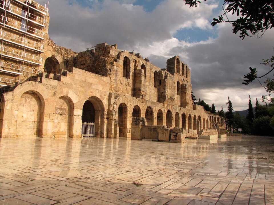 В Афинах на акропольском холме находится 2 театра. И если театр Диониса завораживает масштабностью, то одеон Герода Аттика притягивает публику своей романтичной историей и различными представлениями, проходящими в наши дни под открытым небом. Отдельно стоящее здание находятся на юге Акрополя. Построено оно значительно позже других в этом архитектурном ансамбле: во II веке нашей эры. Идея возведения одеона и средства принадлежали философу и оратору Героду Аттику, который посвятил это творение своей ушедшей из жизни молодой и красивой жене.