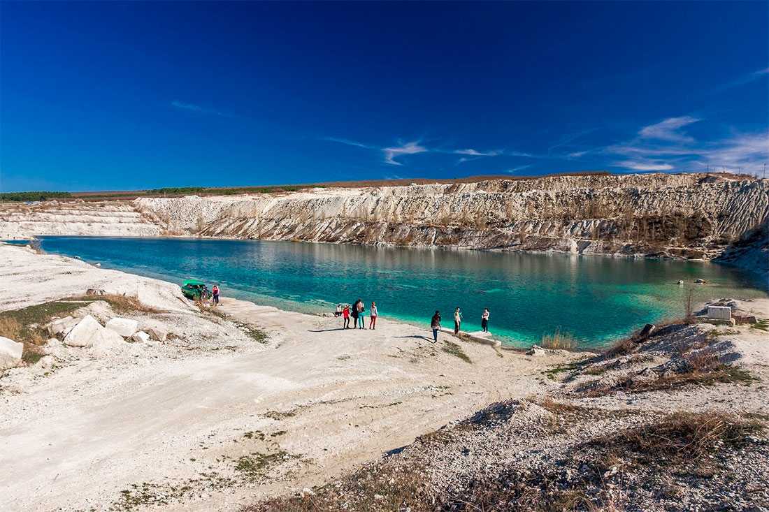 А вот еще одно название этого озера – Мраморное – подходит ему гораздо больше (кстати, на Яндекс-картах этот водоем значится именно как Мраморное озеро). Практически лишенные растительности берега из белого инкерманского известняка действительно напоминают мраморную окантовку. Смотрится это очень красиво, особенно в сочетании с лазурным, отдающим бирюзой цветом воды.