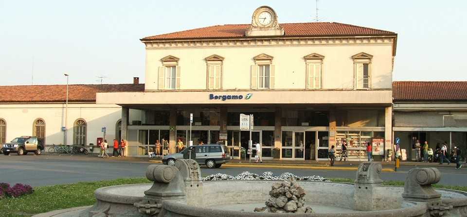 Железнодорожный вокзал Бергамо (Stazione di Bergamo) расположен в нижнем городе, на Piazzale Guglielmo Marconi, 4. Сюда приходят междугородние поезда и электрички (в основном, регионального следования). Многие поезда идут в направлении Милана, дорога занимает около часа. Туристы должны быть готовы к тому, что в кассах вокзала большие очереди. Поэтому билеты лучше брать заранее на официальном сайте Trenitalia.