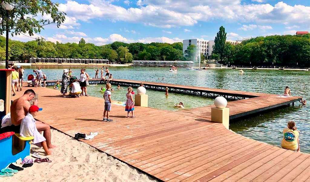 Рукотворный водоём за полвека стал настоящей железноводской Швейцарией. Озеро вырыли в 1954 году у подножья Железной горы. Его берега украшены цветными камнями, в центре обустроен островок, к которому ведёт арочный мост.