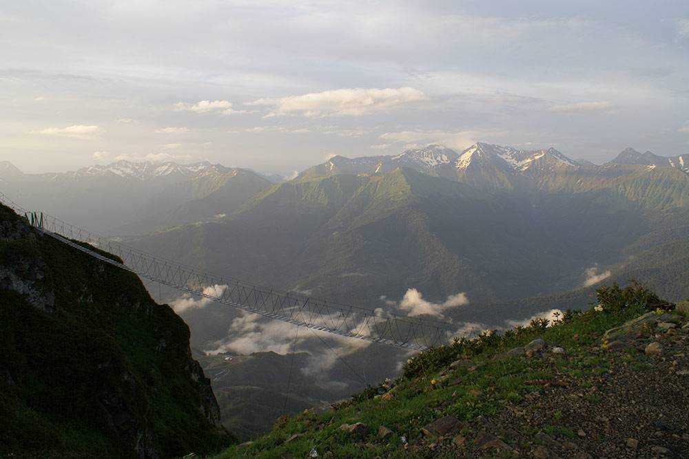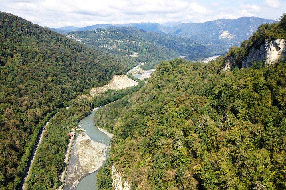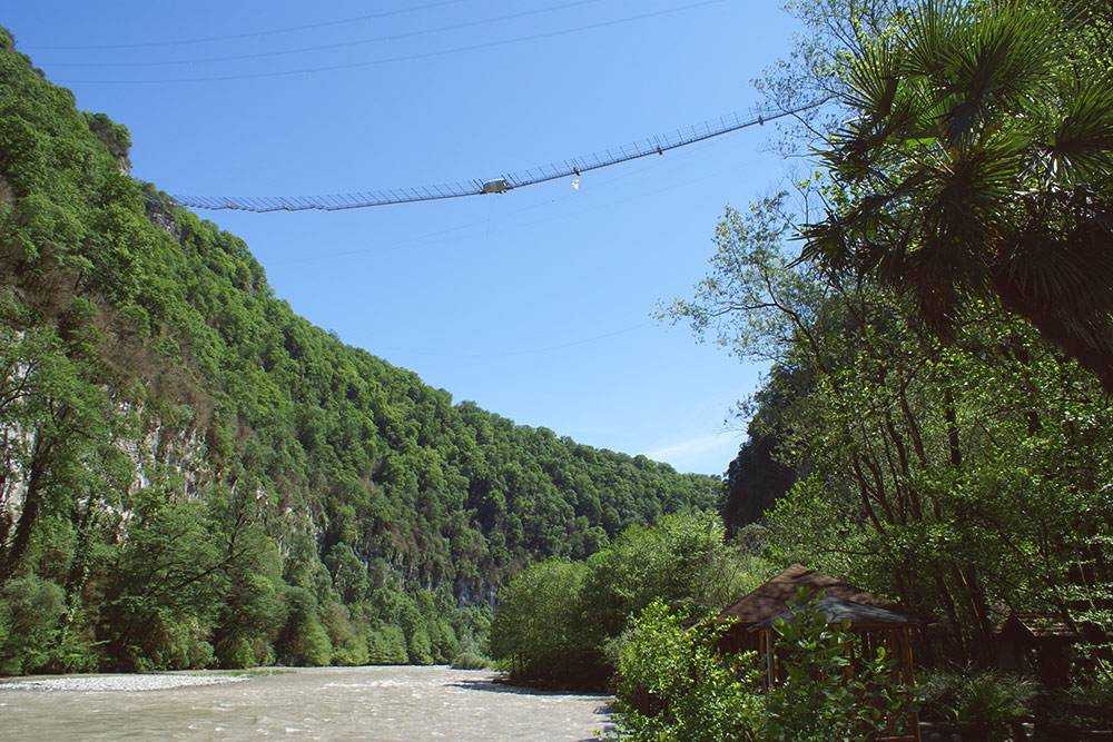 «Скай-парк» — это парк развлечений на огромном подвесном мосту через ущелье над рекой Мзымта. Мост находится на высоте 207 метров и считается одним из самых длинных подвесных мостов в Европе.