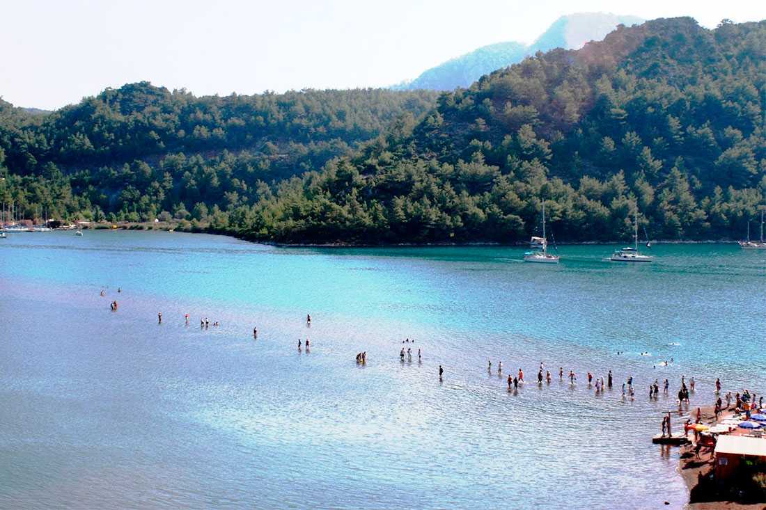Песчаная коса Кыз-Куму – природное чудо Мармариса. Это живописное место находится возле маленькой деревушки Орхание. Название косы переводится с турецкого как «девичья коса» или «девичий песок». Однако, вопреки своему названию, коса покрыта не столько песком, сколько галькой красновато-коричневого цвета. С этой узкой полосой суши, уходящей на 600 метров в море, связано несколько старинных легенд, которые местные жители охотно рассказывают туристам.