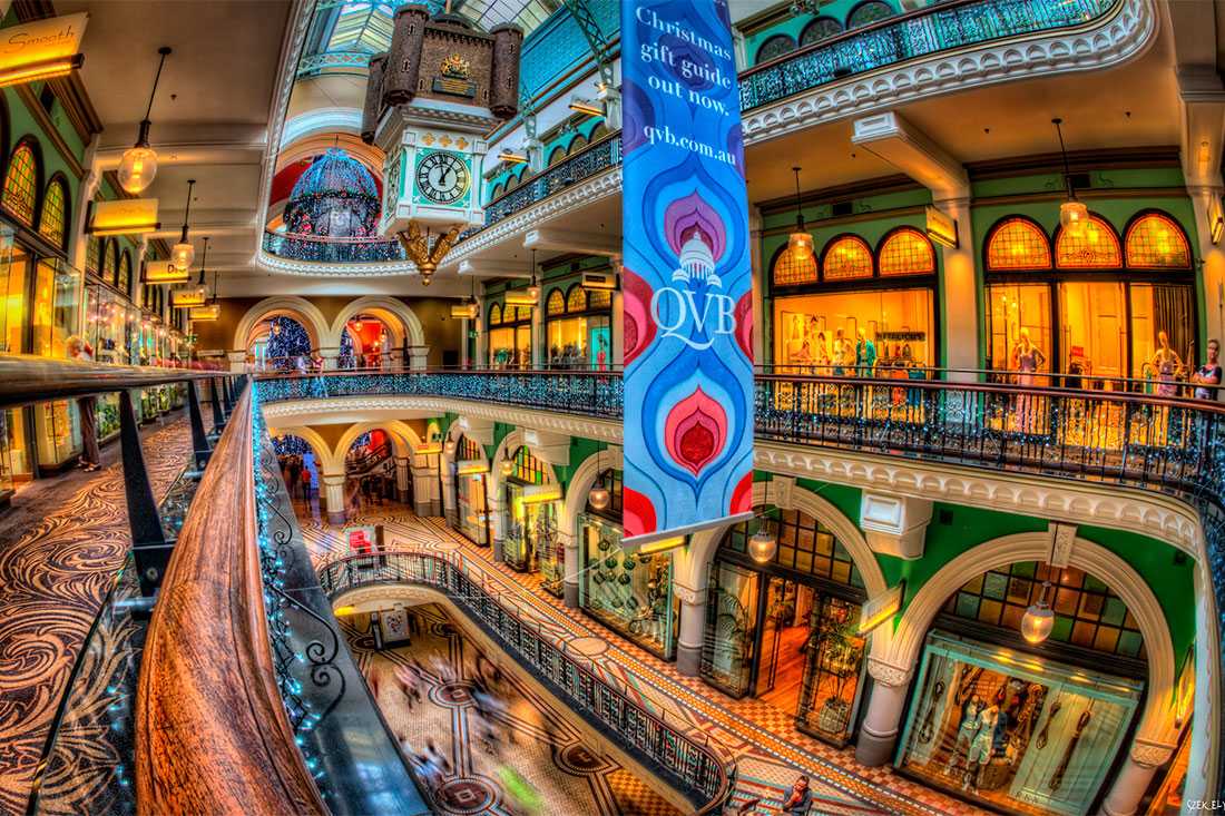 Известное также как QVB (аббрев. от Queen Victoria Building), здание представляет собой пятиэтажный торговый центр, занимающий целый городской квартал, внутри которого находится около 200 магазинов. Здание было построено в 1898 году архитектором Джорджем Мак-Раем и задумывалось как место для рынка и концертного зала.