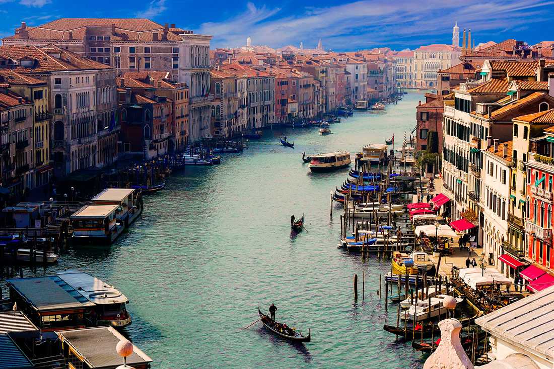 Гранд-канал, по обеим сторонам которого расположены сооружения в романском, готическом и ренессансном стилях, пересекают четыре моста, самый известный из которых – мост Риальто XVI века. Лучшее время для катания на гондоле – раннее утро: в это время канал переливается золотым светом.