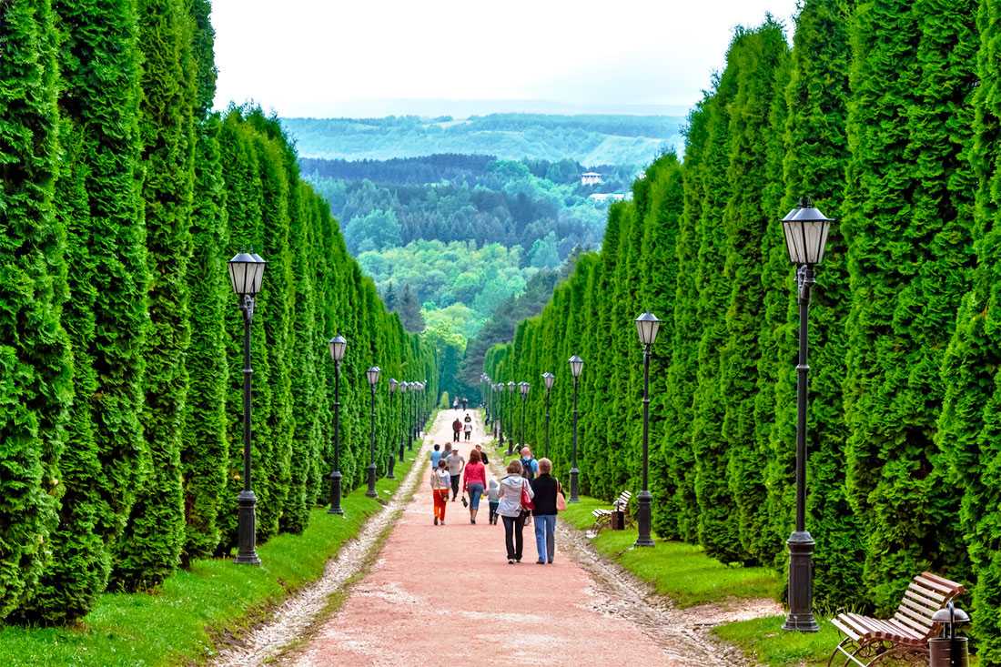 Этот памятник архитектуры приводит туриста к обзорной площадке, открывая волшебный вид на красоту всего парка. На вершине расположены колонны, которые придают еще больше изящества этому произведению искусства.