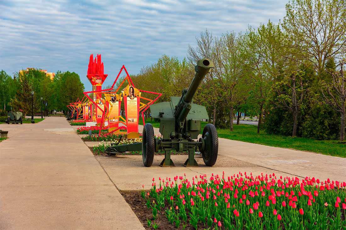 Парк Победы – самый крупный парк в Тамбове, своеобразный подарок властей жителям города к 50-летнему юбилею Великой победы. Парк не банальный, тематический, прославляющий силу духа русских бойцов и военную мощь страны.