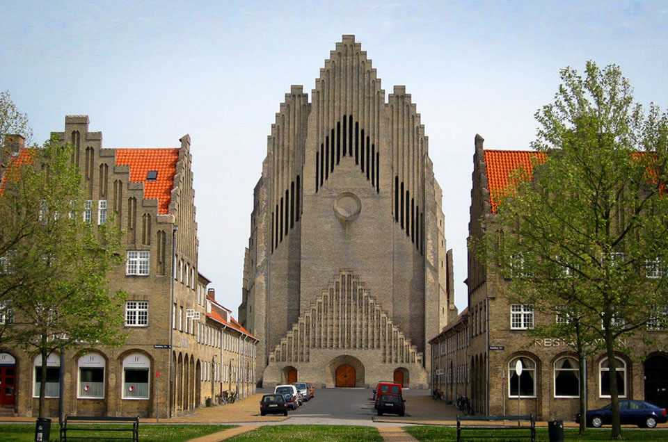 Главный фасад церкви напоминает колоссальный орган высотой 49 метров. Впечатляющий внешний вид придает ощущение безысходности и мрачности. Зато внутри посетители видят светлый и воздушный интерьер. Создается впечатление, что из грозного реального мира каждый заходящий сюда вступает в обитель света и радости, оставив несчастья за порогом. Церковь Грундтвига — одно из самых самобытных культовых сооружений Копенгагена.