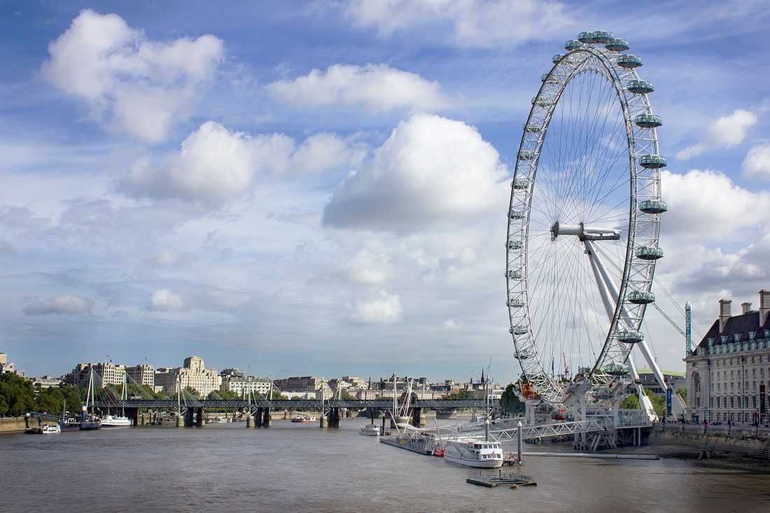 Лондон Ай («Лондонский глаз») – гигантское колесо обозрения, высота которого 135 м (443 фута), – расположен на берегу Темзы. Колесо оборудовано 32 кабинками-капсулами со стеклянными стенами. С «Лондонского глаза» открываются потрясающие виды на центральные кварталы Лондона.