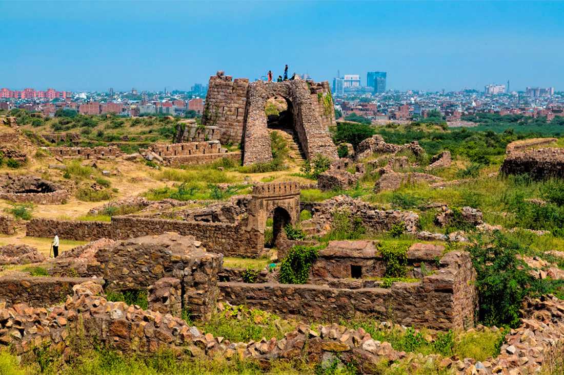 Форт Туглакабад был построен в начале 14 века, но уже через несколько лет после возведения был заброшен из-за того, что его основателя убили в бою. Внешне сооружение выглядит как массивная каменная крепость неправильной формы, которая должна была окружать город. Наклоненные стены наполнены камнями, в верхней части расположены защитные укрепления, на некотором расстоянии друг от друга находятся круглые бастионы.