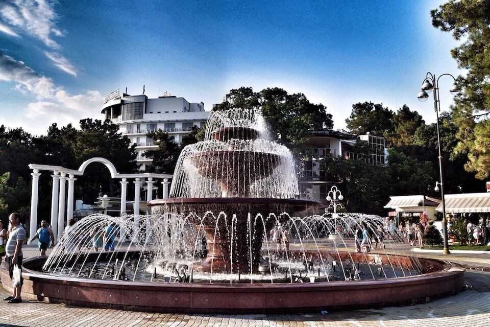 Это популярное место: с наступлением сумерек сюда приходят гости курорта и местные жители. Обычный (в дневное время фонтан) превращается в потрясающее сооружение. Его струи красиво подсвечены и танцуют: меняют высоту, направление и интенсивность потока в соответствии с музыкой. Мелодий в арсенале фонтана целых 20. Ими (и светом тоже) управляет электроника.