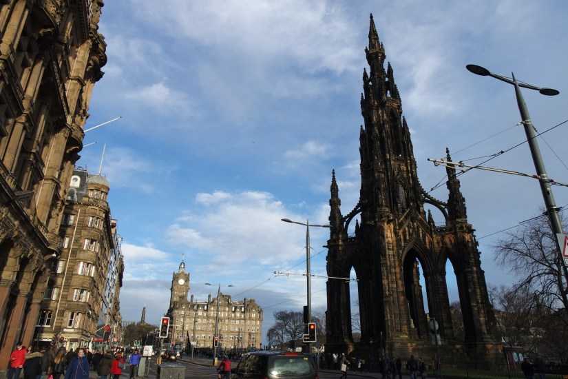 Двигаясь к центру города в сторону «Нового города», вы окажетесь на улице Принцес Стрит. Здесь находится Монумент Скотта — это ничто иное, как памятник шотландскому писателю сэру Вальтеру Скотту. Сооружение больше похоже на собор, чем на памятник. Общая высота манумента составляет 61 метр.