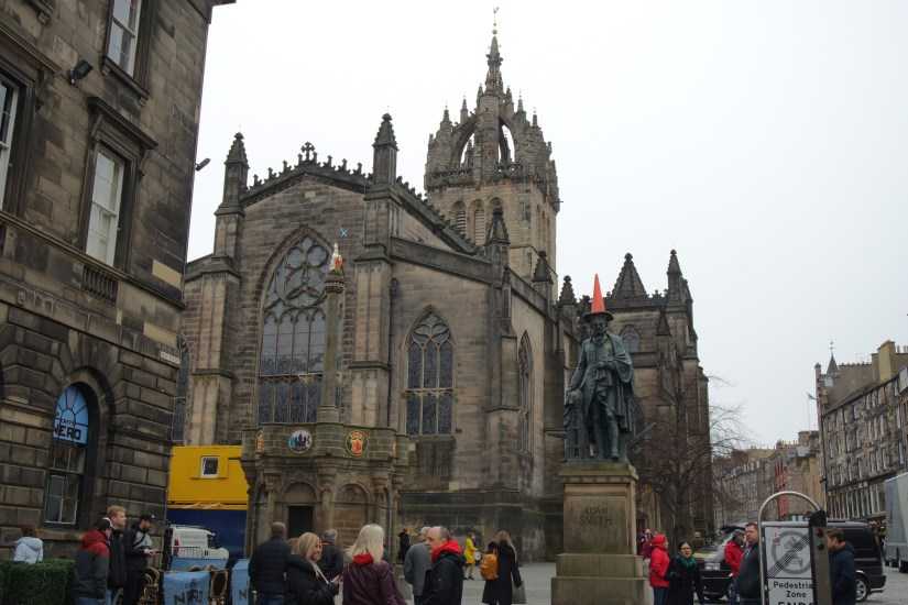 - Собор Святого Джайлса высится в историческом центре города. Он освящен в честь покровителя Эдинбурга — святителя Джайлса. По сохранившимся данным, христианский храм существует здесь с 854 г. Самая древняя часть здания — 4 массивные колонны, датированы началом XII ст. Множество элементов внутреннего декора относят к концу XIV ст. Из-за того, что приделы пристраивали в разное время, храм выглядит асимметрично и необычно. В разные времена в церкви располагалась школа, полицейский участок и тюрьма. В 1911 г. в святилище появилась Часовня, в которой ежегодно проводят службы Ордена Чертополоха. Собор открыт для посетителей ежедневно с 9.00 до 17.00, а в воскресенье он начинает работать с 13.00.