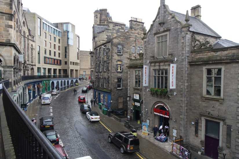 С Королевской Мили есть выход на Victoria Terrace — вы окажетесь на уровень выше соседней улицы. Или другими словами, вы гуляете по крышам домов улицы Victoria St.