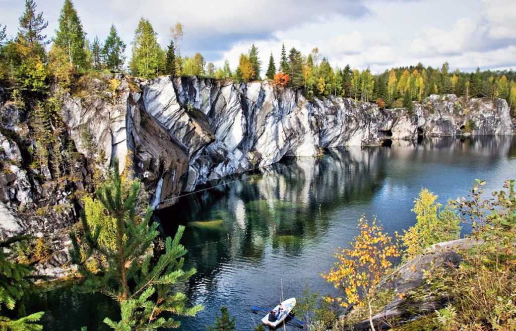 В Карелии есть потрясающее место, жемчужина природного мастерства — природный парк Рускеала. Сюда приезжают, чтобы насладиться природой и полюбоваться Мраморным каньоном. В прошлом столетии здесь активно добывали мрамор, но по окончанию войны добыча прекратилась, и каньон стал заполняться кристально чистой водой. Добыча мрамора в этих местах начиналась еще шведами в семнадцатом веке, но после передачи этой местности России Рускеальский каньон стал одним из главных поставщиков мраморного камня в России.