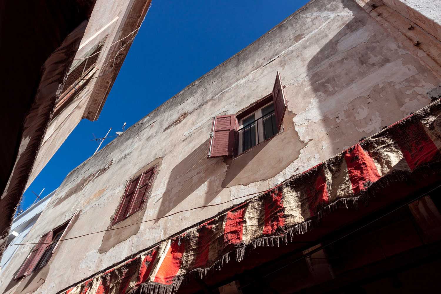 Немногие дома в медине хорошо сохранились вместе с европейскими балконами и ставнями в окнах.