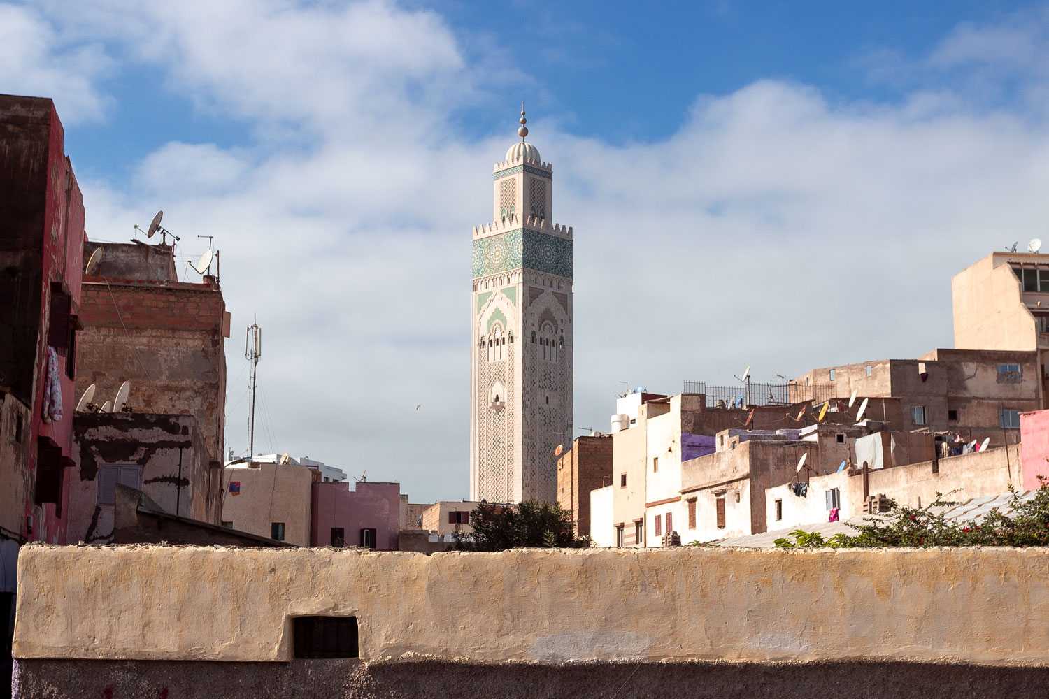 Эта достопримечательность является чуть ли не самым религиозным местом в целом мире. Расположилась мечеть на побережье Атлантического океана. Высота здания составляет около 200 м, она выше чем пирамида Хеопса в Египте. На ее строительство понадобилось больше 2000 тысяч рабочих, около десяти тысяч художников и мастеров способных придать необходимый вид этому месту. Снаружи здание очень похоже на дворец. Пол украшен золотым мрамором, а крыша будто украшена изумрудами.