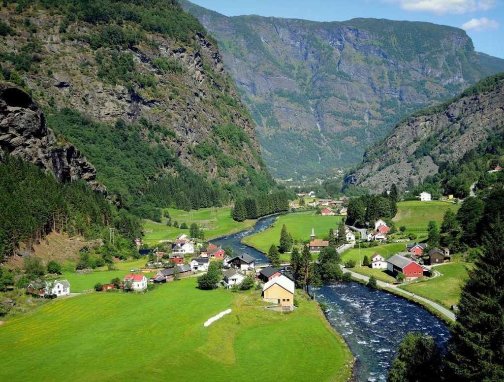 Флом – живописная норвежская деревня, расположенная у подножия фьорда Аурланд (Aurlandsfjord), восточного рукава Согне-фьорда, недалеко от Бергена. Деревня, в которой проживает всего 500 человек, состоит из небольшой группы разноцветных деревянных домов с видом на округлый залив в конце фьорда, окруженных высокими горами, зелеными весной и летом и белыми зимой.