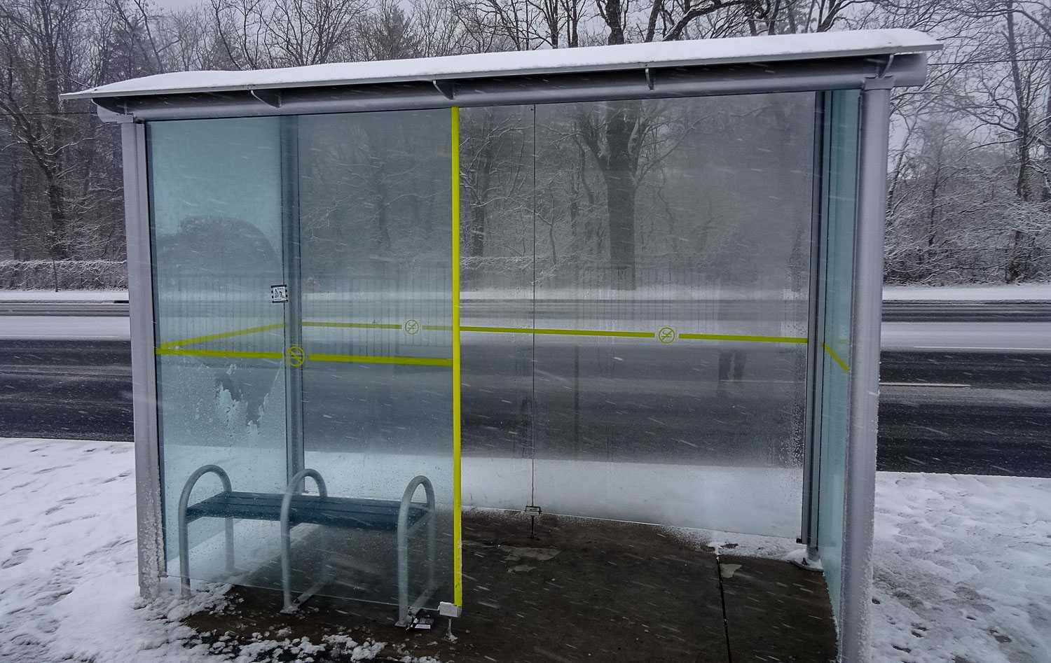 Пассажир подходит, что-то отгибает, ставит велосипед, что-то фиксирует и заходит внутрь. Класс! Еще одна фишка — закрывающие от ветра остановки. Когда мы ждали автобус во время снегопада, особенно порадовались.