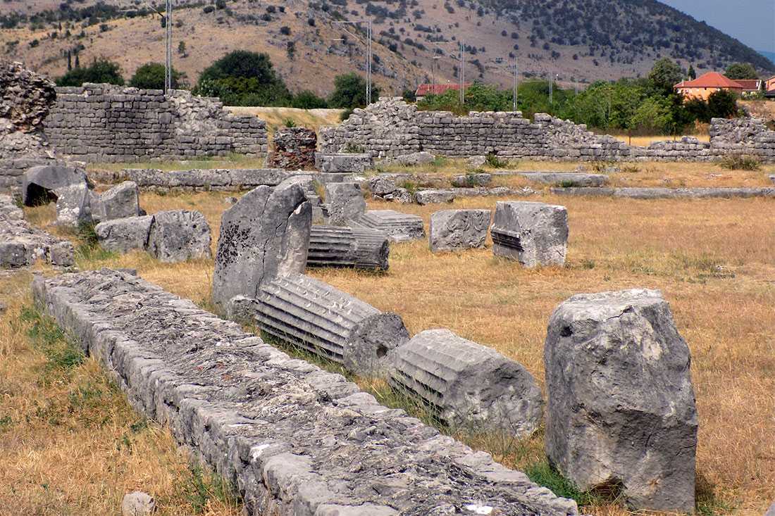 остатки бывшей городской стены, колонны и другие элементы древней архитектуры.