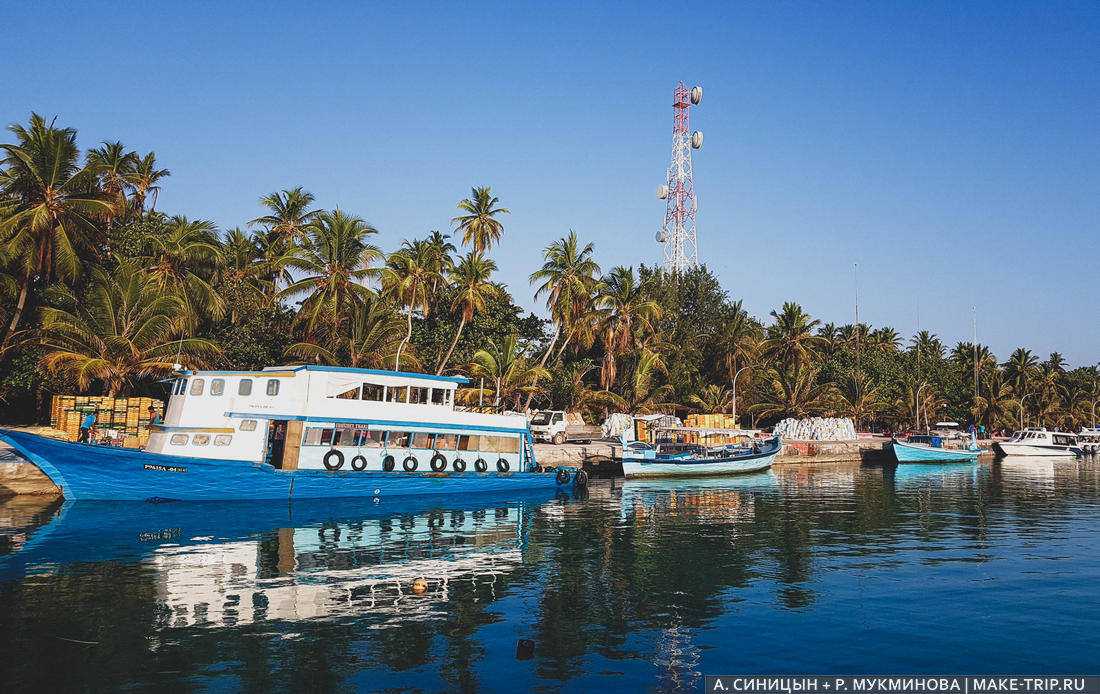 Если хотите сэкономить, отправляйтесь на Тодду из Мале на фруктовом пароме — он стоит всего 10$. На фото он слева.