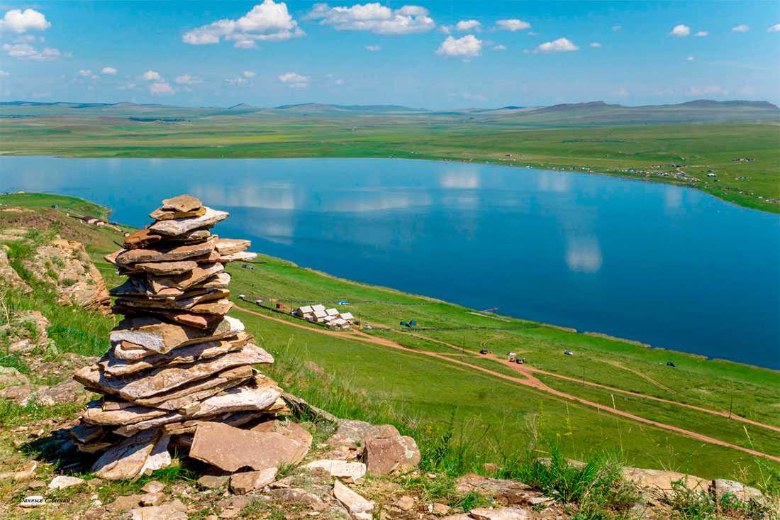 Достопримечательность находится в 4 км от Солёноозерного, посреди хакасской степи, лишь с западной стороны озера – небольшие горы. Водоем отличается необычайно соленой водой, это своего рода местное Мёртвое море. Концентрация соли так высока, что минералы образуют на дне плотную корку. Площадь водоема – 1,5 км2, в глубину он 4,5 м.