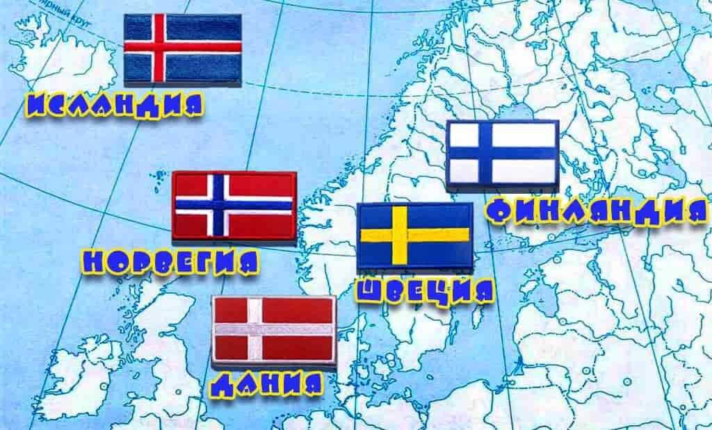 Столицы этих стран: Дания — Копенгаген, Финляндия — Хельсинки, Швеция — Стокгольм, Норвегия — Осло, Исландия — Рейкьявик.